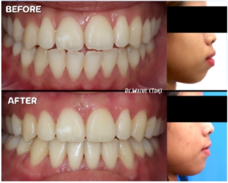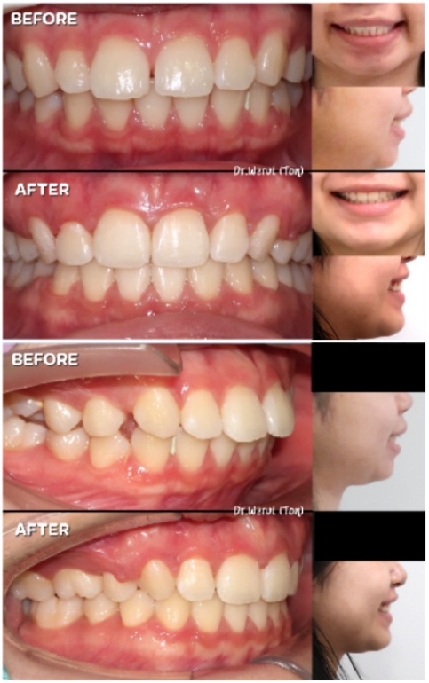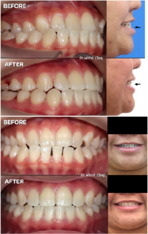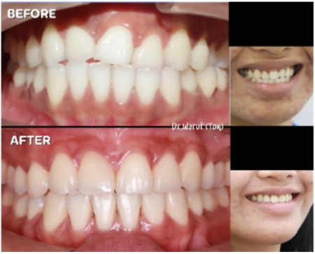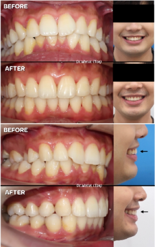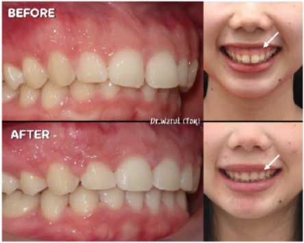 เคส 5) ลดฟันยื่น ยิ้มเห็นเหงือก ร่วมกับการใช้หมุดจัดฟัน