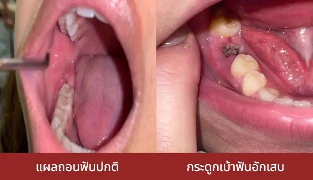 - ทันตแพทย์จะใส่ยาชา ล้างแผล ล้างเศษอาหาร ให้แผลสะอาด